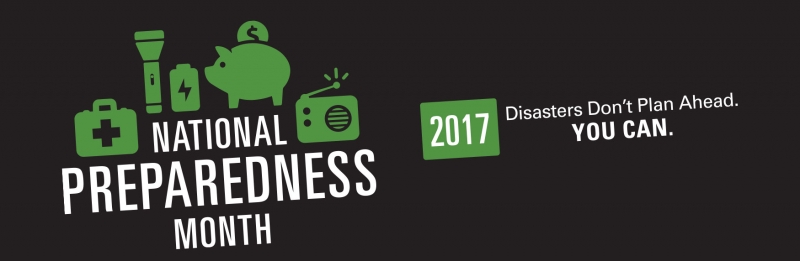 Disasters DON'T plan ahead. YOU CAN! - is the theme for National Preparedness Month 2017.